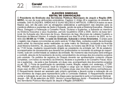 O Sindicato dos Servidores Públicos Municipais de Jequié e Região – SINSERV completa 34 anos de história, marcados por lutas, conquistas e a defesa intransigente da da democracia , de uma sociedade mais justa e igualitária e em defesa da categoria. Fundado com a missão de representar e lutar pela garantia dos direitos dos servidores …