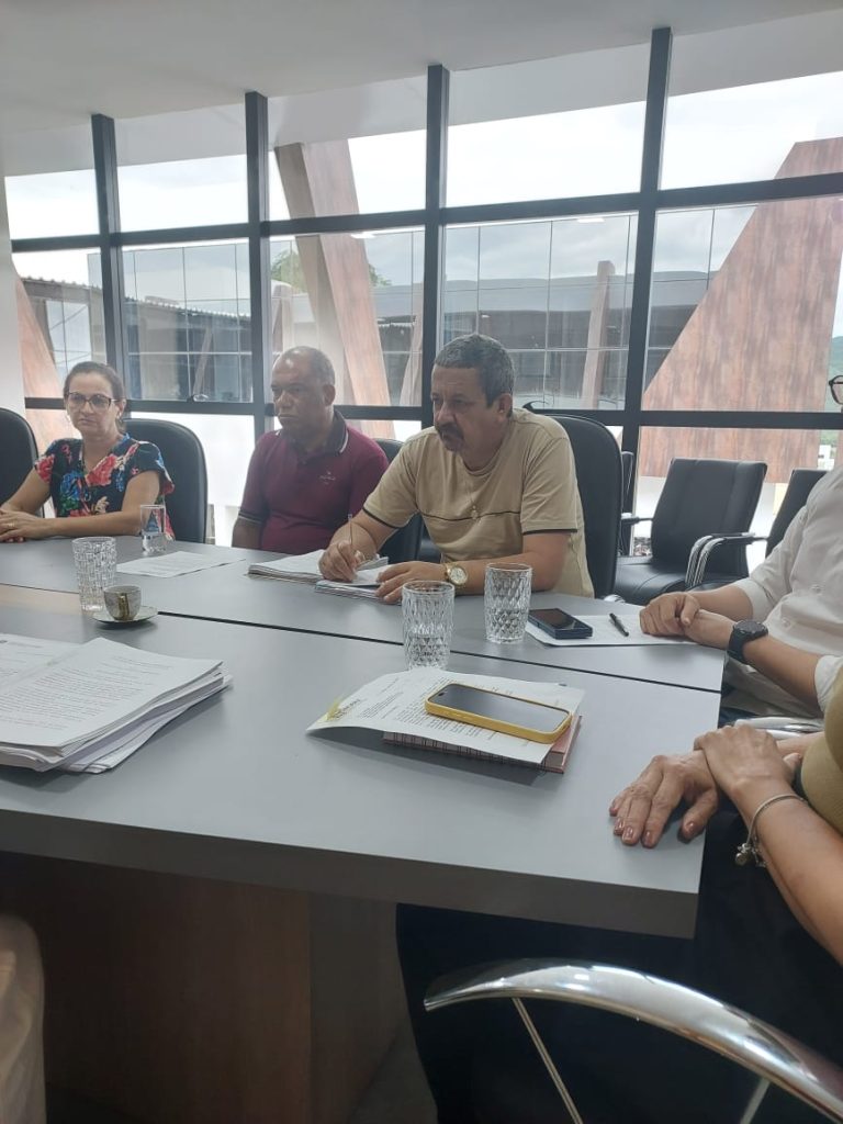 A primeira reunião aconteceu com a presença de representantes da Vigilância Sanitária, diretores do SINSERV, vereador e colega Aroldo Brito, procurador geral, Dr. Daniel Quadros e a Secretária de Administração, Alessandra Silva. Em seguida houve a segunda reunião.
