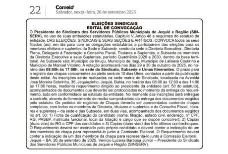 O Sindicato dos Servidores Públicos Municipais de Jequié – SINSERV vem a público registrar sua participação na solenidade de posse do novo Conselho Municipal de Saúde para o triênio 2025/2028, realizada na tarde desta segunda-feira, 14 de julho de 2025, no Sindicato dos Bancários. Durante a cerimônia, o Presidente Venício Lucena foi reeleito como conselheiro. …