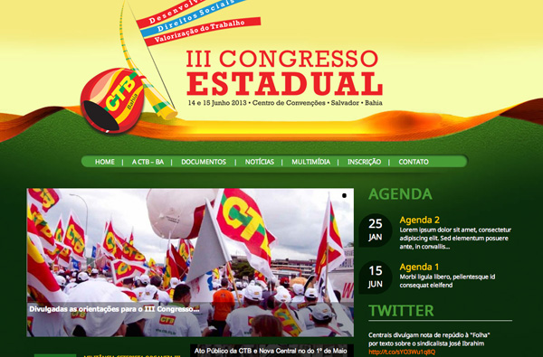 Há quase um mês da realização do III Congresso Estadual da CTB-BA, a entidade lança um hotsite para aquecer os preparativos do evento. Na página, os trabalhadores podem ter acesso a documentos, acompanhar as plenárias regionais, conhecer o histórico da Central, a opinião de seus dirigentes e realizar a inscrição de delegados.